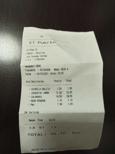 Estuvimos el pasado domingo mí pareja y yo y salimos bastante disgustados y con la sensación de habernos tomado el pelo. Pedimos dos raciones; una de croquetas de jamón y otra de calamares. Las croquetas eran las típicas mini croquetas congeladas. NO eran CASERAS pero sí te las cobran a precio de serlo (12,50€). Pasamos a los calamares... aquí ya se lucieron: INCOMESTIBLES. Pensamos que teniendo el puerto al lado el pescado sería fresco y de calidad, pero no. Gran equivocación la nuestra. A pesar de que estaban como chicles y el rebozado era malísimo (toda la pinta tenían de ser congelados) te cobran 18,50€ por una "ración" que más que ración parecía una tapa. 4 calamares mal contados, ¡vergonzoso! De los días que hemos pasado por Asturias es sin lugar a dudas el PEOR SITIO donde hemos comido y donde MÁS CARO nos ha salido. En resumen: raciones MUY MUY ESCASAS Y SIN CALIDAD para el precio que pagas. Ni vuelvo ni lo recomiendo. Por los alrededores hay muchísimas más...