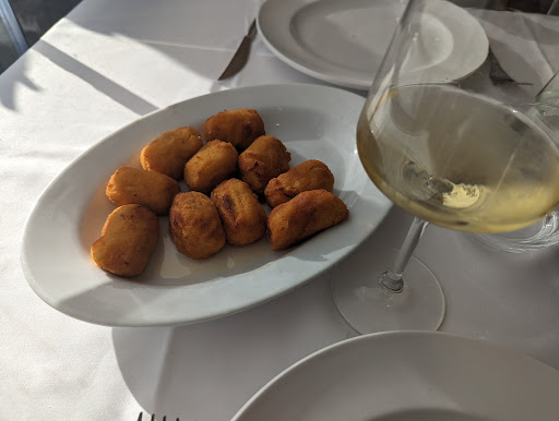 Fuimos a este restaurante con grandes expectativas, pero la experiencia dejó mucho que desear. Si bien la comida no estaba mal, las raciones eran increíblemente escasas para el precio que tienen. Pedimos una ración de calamares (20€) y nos trajeron una cantidad ridícula. Lo mismo con el cachopo de merluza (25 €), que por su tamaño no debería ni llamarse cachopo.