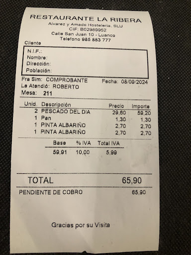 Read moreReservé para tres personas a las 15 horas para comer en el interior, llegamos 10 minutos antes, y tardaron más de una hora en servirnos, empezamos a comer a las 4 y 10min. Elegimos menú de 25eur por ser festivo y pensando que como ya estaba hecho tardarían menos. FUE un error pedir el menú, el primero era fabada que estaba muy fuerte, parecía de lata. De echo no hemos dormido del ardor que nos ha ocasionado (la probamos los tres), yo pedí una ensalada de marisco, y es vergonzoso que te pongan esa ensalada en un menú de 25eur, Tenía cuatro hojas de lechuga, dos mejillones, un palito de cangrejo y un trozo de tomate de mala calidad y demasiado maduro y mala presentación (qué pena no haber hecho fotos). De segundo un pescado local, de baja calidad (no recuerdo el nombre), y el postre pedimos cafés ya que los postres no merecían la pena. La bebida vino tinto o agua, no daban otra opción. El servicio PESIMO, atendían a otra gente en la terraza que llegaban más tarde, nos atendieron los últimos y salimos de los últimos. Entre los camareros y el jefe de camareros se apreciaba mal rollo, quizá estaban sobrepasados de trabajo. La camarera que nos atendió, nos pidió disculpas en dos ocasiones por la tardanza en servir, nos decía Qué la cocina iba lenta. Lenta?..si habíamos pedido el menú se supone que la fabada y el pescado estaba hecho y la ensalada Parecía cuatro hojas de acompañamiento a un plato y que Se termina por no comer. No se ajusta el precio del menú a la calidad, deja mucho que desear. No acostumbro a poner reseñas pero me pareció una estafa al turista que deja su dinero (75 euros), RESTAURANTE MUY PÉSIMO PARA NO VOLVER Qué pena no haber leído las...