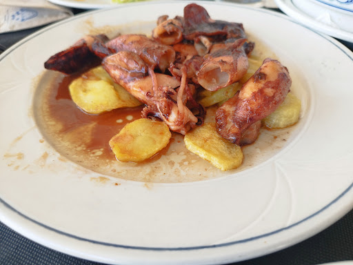Otras tres personas compartimos lubina (pedimos 3 raciones) y unas llamparas y al rato volvió el camarero a decir que no había llamparas (aunque luego siguieron sacando platos del menú de arroz con llamparas). Pero tampoco nos preguntó si queríamos cambiar la ración por otra, que sí queríamos. Se fue, tuvimos que volver a llamarle para que nos incluyera almejas a la marinera. Las almejas estaban buenísimas, la ración de 12 almejas un poquito escasa por 18€ pero la salsa para chuparse los dedos. Y la lubina muy rica también a la plancha, pero nos han puesto una lubina en lugar de lubina y media (sospecho que por no abrir una más y dejarla a la mitad) pero nos han cobrado las tres raciones de lubina bien a gusto. No era tan grande como para tres y si no que cobren dos raciones, que es mucho abuso...