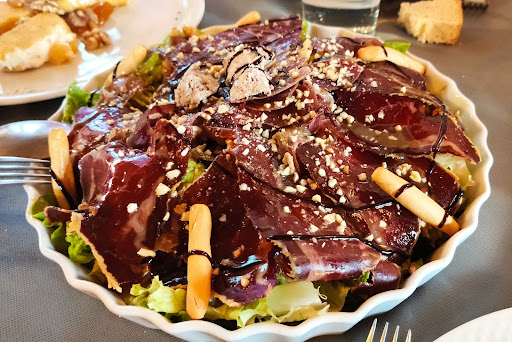 Read moreUna decepción,menú escaso en comparación calidad-precio,18€. No había mucho donde elegir,ensalada variada,llevaba frutos secos 1 tomate cherry y cecina. También podías elegir garbanzos o macarrones.Los segundos,churrasco de ternera,duro como la suela de un zapato,pollo con mostaza o hamburguesa. El acompañamiento tanto del menu infantil como la carne patatas fritas que estaban frías. Una de las camareras la del pelo corto mandó sentar a mi hijo para poder cantar la carta de los postres. Cuando el niño fue al baño le apagó la luz,tuve que ir a acompañarle. Total,no volveremos.A 18€ el menú podría sólo ir a mejor. Por cierto no entendí el no aconsejarnos...