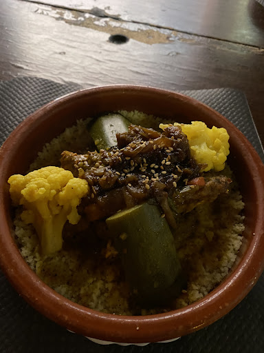 NOT GENUINE MOROCCAN TAGINE OR FOOD, do not go here. Had the menu del día after seeing this place recommended somewhere. More pricey than others around but can not contest for the other qualities as only tried this place. The hummus at the start was passable but felt watered down slightly (not very thick and not an intense flavour profile which I personally like) plus was served with normal bread not Moroccan or flat bread - but the ‘tagine’ for second plate was abomnibal. No thick sauce, literally like water. A selection of vegetables but no sweetness, spice or apricot. Also lacked basic salt seasoning. NOT a Tagine and if you are expecting one or want to try one AVOID HERE. Service also shocking, had to ask multiple times for things. Waiters seemed either miserable or angry. Toilets gross. Cutlery served to us wet from freshly washing. Other diners around all seemed dissapointed as well despite ordering off the actual menu. I live in Spain and can assure you this is NOT worth your money, shop around and go find a quieter spot where you can see what people are ordering. Oh the regret. AVOID...