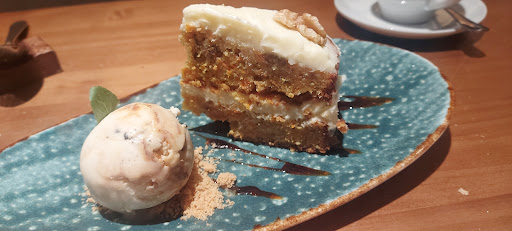 📷 Postres : piononos con helado de canela tarta de zanahoria con helado de yema brownie con cremoso de chocolate