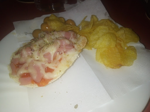 Read moreEstuvimos de tapas a la hora de comer. Lo habíamos visto de paso otras veces y no pintaba mal por la gente que había en la terraza. Una vez dentro, hay un olor bastante desagradable, como a moqueta vieja, que nos desagradó mucho. Vimos la carta de tapas y tenían muchísimas, aún teníamos esperanza. Nos sirvieron sin limpiar siquiera la mesa, y cuando trajo el camarero las tapas y le pedi que si podia pasar una bayeta (estaba llena de migas y pringue, no podiamos ni apoyarnos), no le agradó demasiado, pero la limpió. Aparte de una familia éramos los únicos dentro del bar, así que no es que estuvieran hasta arriba para molestarse. Bueno, el meollo de la cuestión, las tapas. No estaban malas, no voy a mentir, pero si es de esperar que un perrito , ya que es un bollo chico, tenga un poco más de sustancia que 2 salchichinas de carnicería. La tapa de Bacon, poco hecho, pero buena. Los "burritos" no estaban malos.