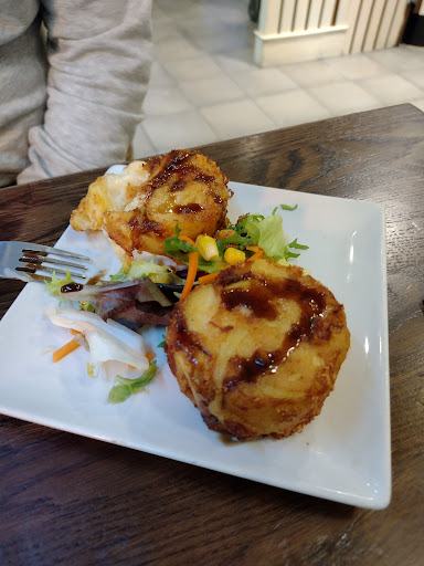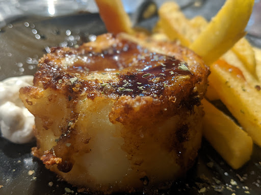 Read morePatata gratinada in the photo. My favourite tapa. This was an special order, it comes with a side salad but I love their fries, I made a special request haha