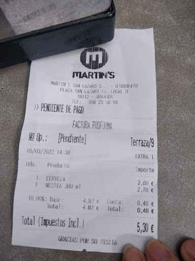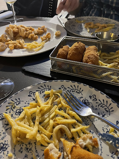 Hoy hemos comido en un restaurante en la Plaza de San Lázaro en Granada q me.ha sorprendido muy gratamente y al q volveré en mis próximas visitas a la ciudad ,seguro , pq quitando el olor a fritanga con el q hemos salido no le he encontrado ningún pero y comer por 19 euros con bebida ,postre y café no se encuentra fácilmente . Local 2,5/5 , no le puedo dar mas q un aprobado pq además de la mala ventilación con olor a aceitazo q notas nada mas entrar y q ya te advierte de q la ropa tendrá q ir directa a ña la lavadora ,además, hacia frío Servicio 4/5 , atento y rápido en general ,igual algunos de los segundos se demoraron un poco pero en general bien Comida 4,5/5 , no esperes diseño ni sorpresas pero lo q hacen lo hacen bien y las raciones son grandes . Destacar las croquetas ,la ensalada de burrata y la tarta de queso , las tres cosas espectaculares. relación calidad precio 5/5 , como he comentado comer lo q comimos y bebimos por 19 euros ya no es fácil . Nota media : 4/5 ,es un sitio para recomendar , lo del local se puede obviar 📷 ensalada de tomate y burrata con pesto, exquisita, pq no todas las burratas son iguales 📷.croquetas, de pollo , de 10 , tanto en textura como en sabor , imprescindibles, vienen 6 , grandes, con patatas fritas 📷 ensalada de tomate y aguacate con ventresca ,lo más flojo , poco aguacate , yo no la recomiendo 📷 tiras de pollo rebozadas, no son empanadas ojo! Ración grande ,con patatas fritas, no están mal pero no las recomiendo 📷 huevos con jamón y patatas ,tamaño bueno ,están bien pero vamos ..pediria otras cosas 📷 tiramisu , no me gustó la pinta inicialmente pero la verdad es q luego estaba bueno 📷 tarta de queso ,excepcional e...