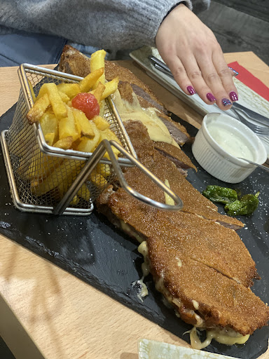 Pedimos un cachopo y genial, bien hecho, tamaño bastante grande (minimo para compartir), queso bien fundido y ya venia troceado. Por ponerlo un solo PERO, se le notaba con exceso de aceite de la freidora. Se veia la capa superficial que no habia escurrido bien el aceite al sacarlo de la misma, pero de sabor bastante bien.