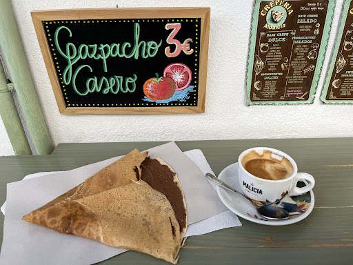 Read moreEl que me comí estaba muy bueno, realmente para quien no es celíaco está muy bueno. Pero en la carta anuncian que tienen crepes sin gluten... Me quise informar sobre ello ya que mi madre es celíaca y poder ir allí con ella, y lo que la chica me dijo, me dejó muy sorprendida, le pregunté que cómo lo preparaba, ya que sólo tiene una crepera, me dijo que lo hace usando otra masa (lógicamente sin gluten), pero usaba la misma crepera e instrumentos sin desinfectar completamente, sólo metiéndolos en el agua donde mismo los mete después de haber hecho los anteriores con gluten (contaminación cruzada), me dijo que ella no es especialista en sin gluten😱... a lo que yo le contesté que sólo podrían comerlos quien no coma gluten por moda o porque lo hayan suprimido de su dieta por gusto... pero no quien tenga alergia o intolerancia... y la verdad que si yo soy celíaca y me fío por lo que pone en el folleto y no estoy pendiente de cómo lo hace fiándome de que es sin gluten... puedo tener un problema... por ejemplo mi madre no puede comer ni una miga de pan, ya que se pone realmente mala... Sinceramente no debería ofrecer un producto si no puede dar las garantías de ello, para evitar un problema a los clientes y a ella misma... así que mucho cuidado quién de verdad no pueda...