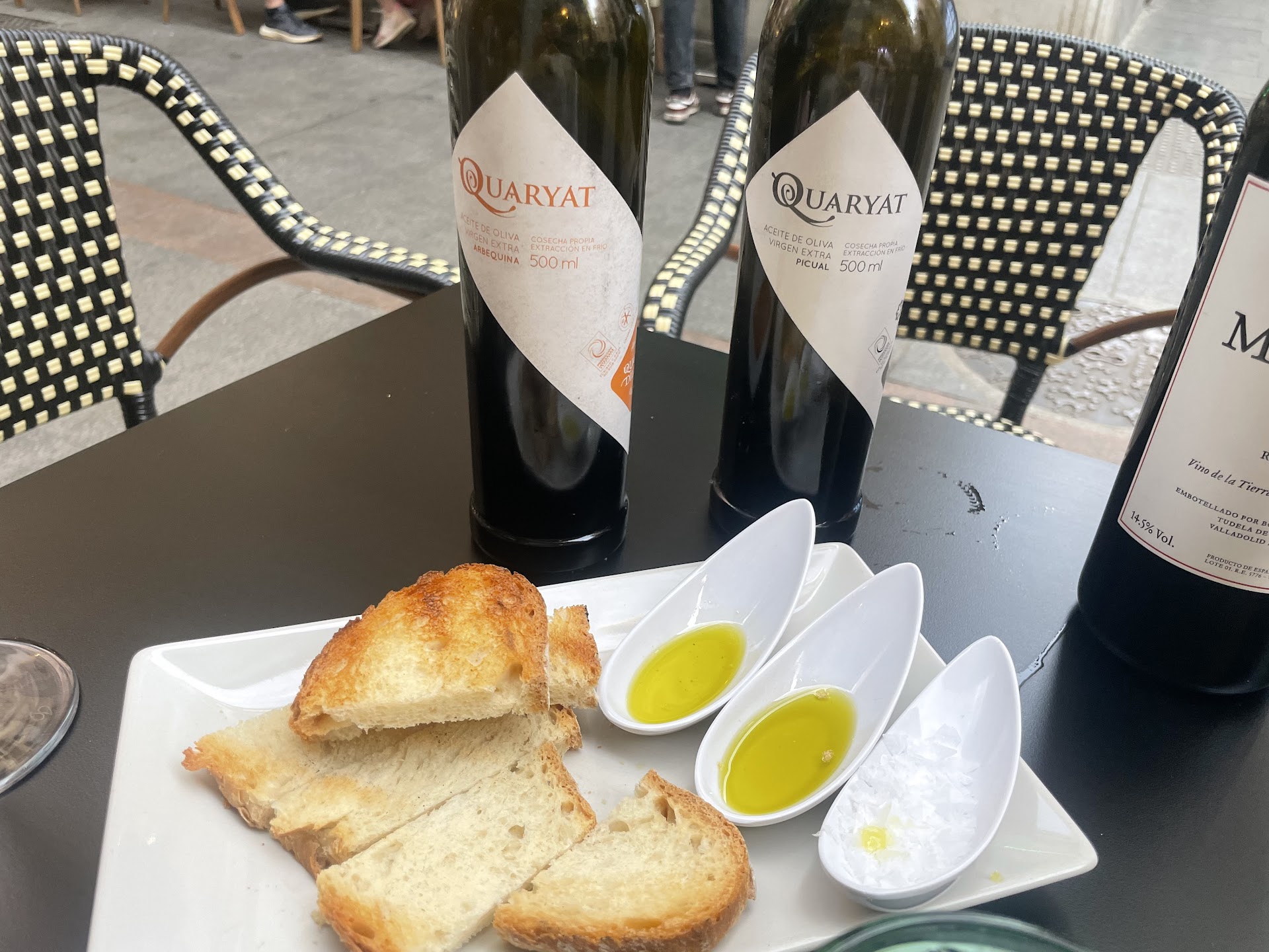 We started with a wonderful tasting olive oil with yummy bread. We were given free appetizers while waiting for our main dish. The recommended red wine was full bodied an went perfectly well with the steak we had. When it came to dessert- their chef recommended the rice with milk which we were not keen on - we asked for the Bartolillo instead. They were so sweet and gave us a sample taste of the rice pudding and it was amazing!