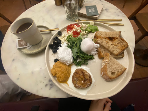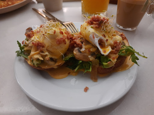 Read moreThe place has a great atmosphere and I specially like the decor choices, such as the terracotta wall and floor. The service was fast and welcoming. The coffee tastes great! We’ve ordered the egg benedict with salmon which I had two issues with: the dish comes on a very small plate so its difficult to eat it without doing a mess personally, I think the egg benedict sauce does not work well with guacamole. The guacamole is way too strong and takes over flavours. If it were up to me I’d only use smashed avocado as a base instead of the guacamole. Overall I’ve had much better egg benedicts in the past so I wouldn’t order it here again.