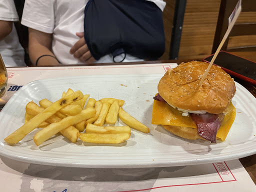 Read moreFuimos a cenar en pareja, nos sentaron, y nos preguntaron que queriamos beber, nos traen la bebida y la carta , seguidamente nos dice que la cocina cierra a las 23h, y el local a las 23:30. Bueno teniendo en cuenta que eran las 10 y 30 nos daba tiempo a pedir; y a comer ya que teniamos una hora para comer o eso creiamos. Pedimos 3 platos uno de entrantes, una burger y uno de pasta. El combo fue lo mas comestible, la hamburgesa muy normalita de sabor, para mi el mcdonalds esta mejor, y el ultimo plato de pasta incomible horrible, nos llenaron el pollo y el pan con medio bote de picante por encima no es una exageracion, Fue algo anormal lo hicieron a maldad para que no comieramos ni volviéramos mas y pal colmo sobre las 23 :10h tenian tanta prisa que se pusieron a fregar el suelo al lado nuestra, mientras tratamos de comer lo poco que se podia comer de lo que sirvieron, aunque gracias a los productos de limpieza no pudimos terminar de cenar, ya que el olor del fregasuelos se nos venia a la comida. Y No, nos quedo otra, pedimos la cuenta y nos fuimos sin terminar de comer y cabreadisimos por el trato que se nos dió. Sin duda es el peor sitio que hemos comido en nuestra vida y 50 euros tirados a la basura. Si no nos querían atender porque nos sientan? si quieren cerrar antes de hora que nos digan que no nos sirven, y nosotros nos vamos a otro sitio sin problemas. Pero ellos solo querian cobrar por una comida y servicio pesimo. Lo que deberia haber sido una cena rica y satisfactoria fue una vergüenza. Nos fuimos con 50 euros menos sin cenar y con una experiencia muy desagradable sin duda...