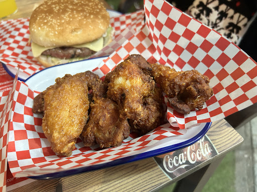Read moreGenial, JustEat nos dejó un pedido tirado y nos lo cancelaron a las 00:25 de la noche sin previo aviso por falta de repartidor después de llevar más de una hora esperando y el chico de la hamburguesería se ofrecio a hacernos el pedido aún cuando cerraban a las 00:30 para que pudiésemos cenar, la comida super rica, las hamburguesas las típicas gorditas que ves y te da hambre solo con verlas y muy ricas de sabor, en cuanto a las alitas que pedimos nada aceitosas y super crujientes, todo riquísimo y a un precio muy asequible,...