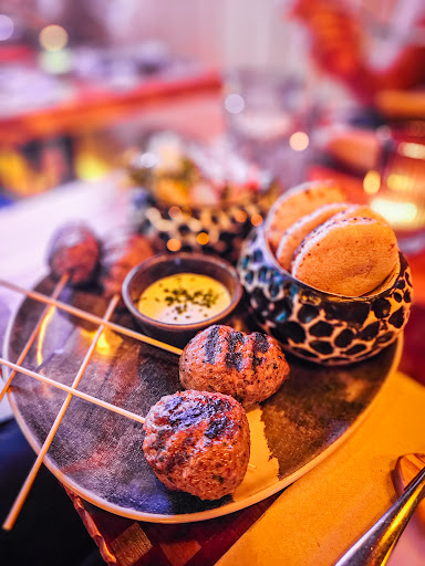 Service was attentive and friendly. Decor is amazing. Music was an eclectic mix of international styles. And, ngl, the birdsong and forest sounds in the toilets were a really nice touch.