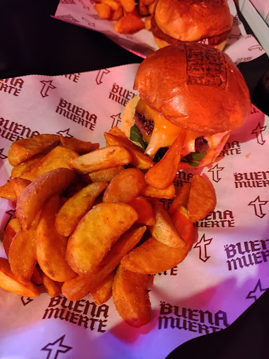 Read moreEs algo increíble, la mejor hamburguesa que he probado ningún parecido con lo que se vende en las franquicias de este tipo de comida. La carne muy buena y en su punto, todo el proceso de la elaboración se hace delante del cliente en el interior del local. Tiene una buena variedad de hamburgesas (vegetarianas, picantes, de pollo...) pero también ofrecen la posibilidad de personalizarlas. Todos los productos son de gran calidad bacon, quesos... son muy buenos. El personal es muy amable, paciente y sobre todo muy eficiente. El local es agradable dentro de lo que se espera de un sitio que se llama la buena muerte. Y lo mejor para el final: las patatas fritas, que vienen incluidas con la hamburguesa, son increíbles las ponen recién picadas y recién fritas en su punto justo de sal ni siquiera yo en casa se hacerlas igual de bien. En definitiva las mejores hamburguesas que he probado y además mejor de precio que la mayoría de las franquicias. Ya he ido dos veces pero...