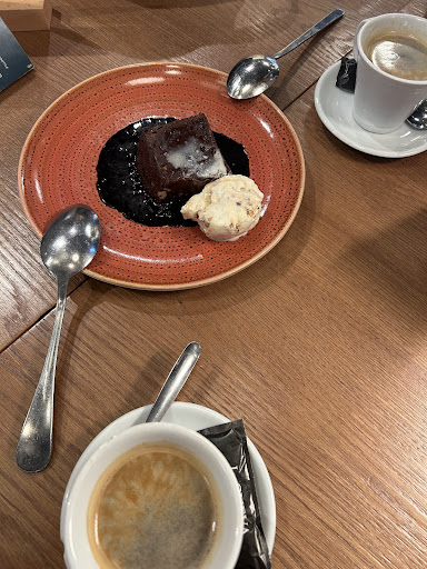 We stopped at this restaurant after going to the nearby Hammam. It's a great location, sitting outside on a nice day. We started inside as there weren't any outside tables, but even before we ordered a table opened abs we were able to go out. The service was good, not great. They rushed when they didn't need to (putting the tapas on the table, using a napkin as a dish and the bread came off of it and onto the table) and when you wanted something it was a little difficult to get their attention (asking for catsup and not getting it). The food was good. I got the premium hamburger with wagyu beef. I'm GF and they didn't have gf buns so I got it with no bun. I should have asked for a bed of lettuce, but I forgot. Usually most places do this automatically in the US. No big deal though. My burger was cooked more week done than the medium I asked for, but better to be over cooked than to be under cooked. My husband got the turkey premium sandwich and he said his was really good. The sauce was really tasty and we asked for a couple more figuring we would use it as a condiment for the French fries. And they charged us 1€ each for the extra sauce. They also tried to serve us a glass of wine twice, by 2 different waiters, but we weren't drinking and didn't want it. They took it away each time and we checked the bill to make sure we weren't charged for it. We were, but they did deduct it. We got 1 small bottle of sparkling water. The...