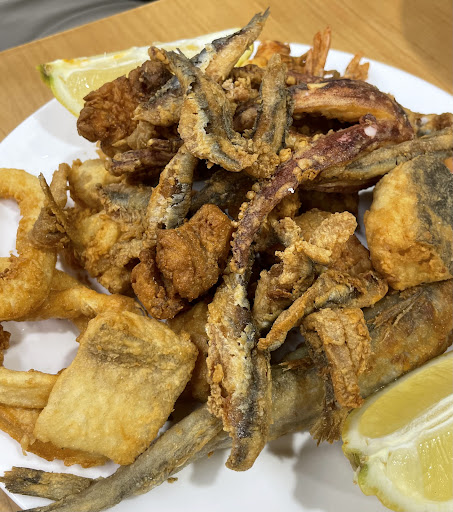Read moreLe doy una estrella porque no puedo poner menos. Como mejor en un kebab que aquí. Vine de viaje con mi pareja y decidimos comer aquí, los cuales han tardado 2 horas en servirnos la comida. Además, la comida que pedimos estaba mezclada con restos de gula y otros alimentos (soy intolerante al marisco, lo cual pienso que puede llegar a ser un gran riesgo que haya contaminación cruzada y PÉSIMA higiene, ya que además me encontré un pelo en la comida.