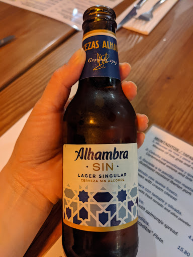 We stopped by this place based on local recommendations. Ordered duck risottos, oxtail Burger, lamb chunks, daily menu, ( which is grilled chicken in cream) with gazpacho and a yogurt desert, and octopus legs. All are spectacular except oxtail Burger, which has a tint of sour to it. The duck risotto is fantastic with black traffle on top, and so does the octopus, which has goose liver pan seared just right. The lamb is also really tasty with sweet cooked apple on top to balanced the taste. All foods are great with materials original flavor enhanced and balanced by seasoning or other ingredients. No dish is overwhelmed by just sauce tastes. The total cost will all these dishes are around 90 euro which is an very affordable price. We have 3 adults 3 kids. And we can't finish all of the dishes in the end. This is definitely the best restaurants that we tried in Granada, highly recommended. Will give a 5 stars if the oxtail Burger is up to my expectations. And I haven't give 5 stars to any restaurant yet. This is the closest one. Oh forgot to mention their none alcohol lady...