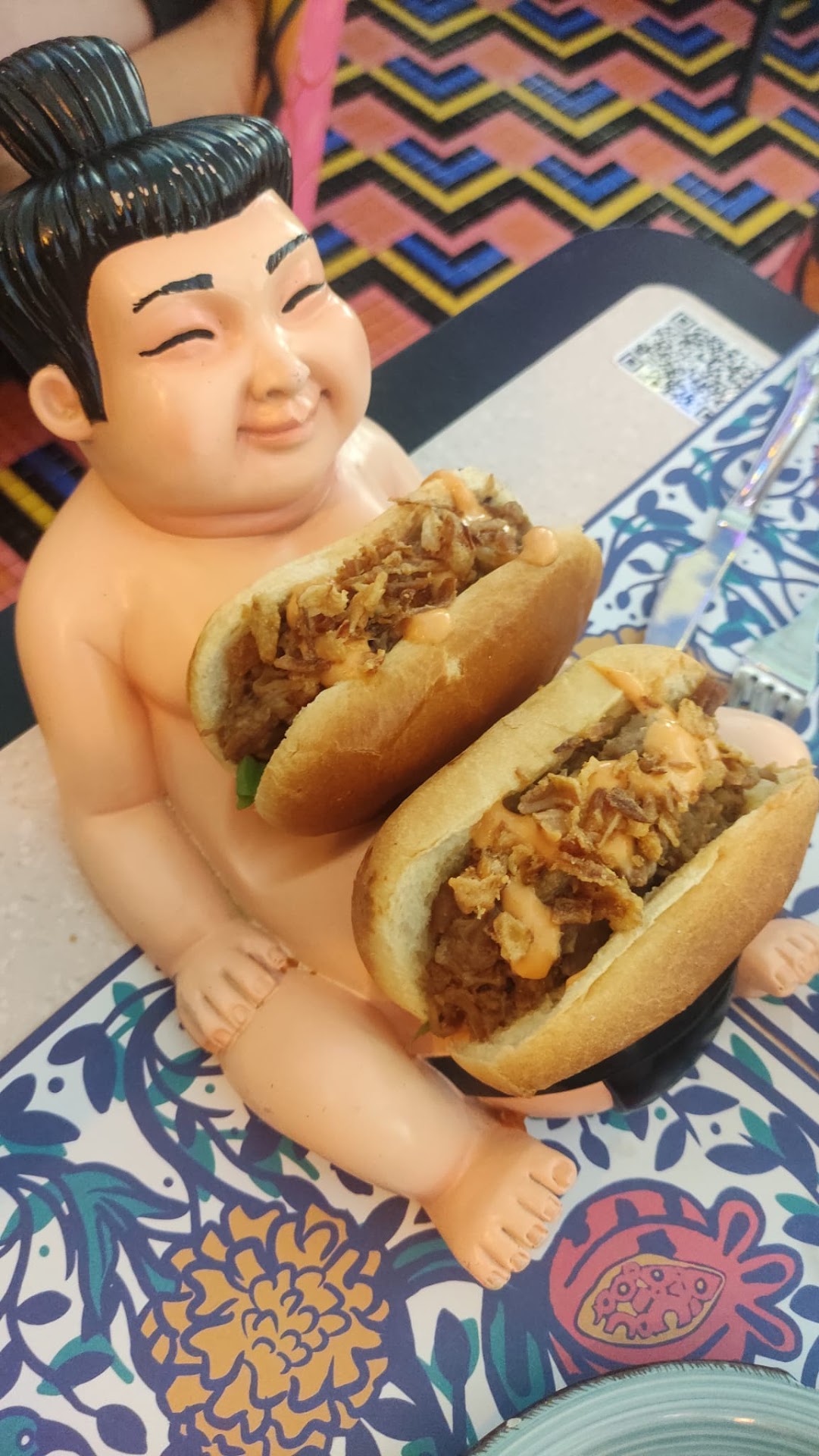 Los tacos estaban rellenos de carne de cerdo deshilachada, cebolla y nata agria. La carne estaba tierna y sabrosa, y los ingredientes frescos y crujientes. El brioche de costillas estaba relleno de costillas de cerdo glaseadas y cebolla caramelizada, además de una salsa riquísima. Las costillas estaban jugosas y con un sabor ahumado, y la salsa le daba un toque de cremosidad. La lasagna estaba hecha con un crujiente , salsa boloñesa, bechamel y espuma de queso manchego con miel y tomate seco. El cremoso de chocolate era de chocolate negro con un poco de leche y estaba cubierto de salsa de chocolate blanco, sobre una cama de crumble de galleta. El chocolate era cremoso y el sabor del chocolate blanco le daba un toque muy equilibrado . La tarta de queso era de queso payoyo y estaba cubierta de queso parmesano rallado.