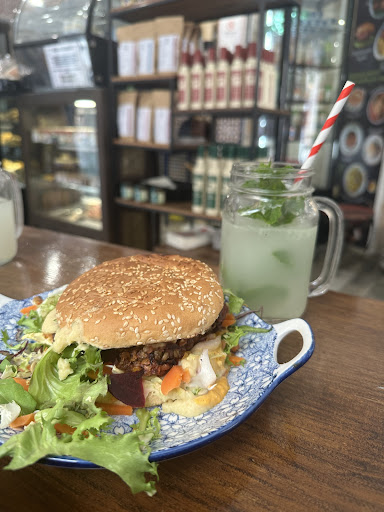 Un local encantador, acogedor, luminoso, con bonita decoración, muy agradable (suave y bonita música de fondo) y en el que comimos de maravilla. Está junto a uno de los arcos de entrada a la ciudad antigua. La comida, casera, muy bien elaborada y a un precio sorprendentemente económico, por tanto, con una relación calidad-precio altísima. Muchas opciones para veganos (nosotros lo somos) y también para vegetarianos, lo cual, junto con lo asequible de los precios, nos dio la oportunidad de probar varios platos diferentes (muchos otros nos quedamos con las ganas de probarlos, en otra ocasión), tanto de comida árabe como de comida española, a cual más sabroso, bien elaborado y bien presentado. Se nota que todo está hecho con mucho cuidado y mucho amor. Por si fuera poco, el personal, en concreto la simpática camarera de ese momento y, sobre todo, Wassila, la atenta, encantadora y cercana dueña del local, nos atendieron maravillosamente. Wassila nos contaba que las recetas se elaboran allí como le enseñó su abuela argelina, con productos naturales y mucho mimo. También nos contó que ese local llevaba 6 meses abierto (muchos clientes que escriben reseñas lo confunden con el otro más céntrico, de la misma dueña, más pequeño, que lleva abierto 20 años con mucho éxito), y que ella fue una pionera en Granada en la elaboración de comida vegana (en su otro local, todavía abierto al público en la actualidad, y ahora también en este). Quedamos encantados y con muchas ganas de volver en una nueva ocasión que tengamos que ir a Granada. Gracias, Wassila, por tu atención, tus consejos, tu regalo del hummus extra y tu...