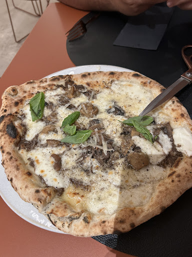 La pizza… madre mía la pizza. Pedimos La Pesante: burrata cremosa, mortadella, base de pistacho… no hay palabras. Cremosa, delicada, diferente, deliciosa. Nos la comimos en un abrir y cerrar de ojos.