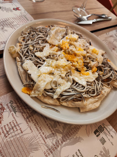 Nosotros recomendamos sobretodo la falsa pizza de gulas y huevos rotos. (Lleva de base salmorejo) y estaba espectacular y los tortellini de salmón tenía una salsa con un toque dulce muy muy rica.