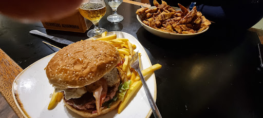 Waiter served me a veal burger instead of a chicken burger, then insisted it was a chicken burger. We also got the Berenjenas, which could be best described as a plate of deep fried aubergines smothered in molasses, and nothing else. Would have been better with a smaller portion and something on the side to give the eater a break like a salad. Didn't even finish them between us as they were so...