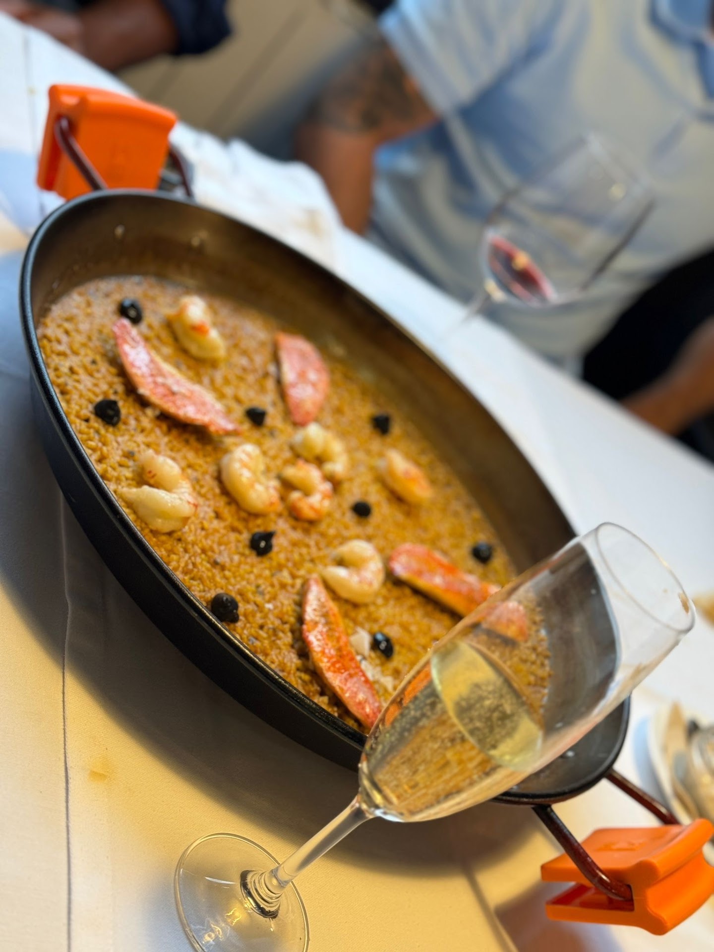 Tengo que decir que el trato por parte de los dueños y de los camareros fue muy amable en todo momento, pero una cosa así nos parece muy grave. Si no llega a ser por la coincidencia de que la tapa llevaba gambas y yo pregunté, hubiéramos pedido un plato de arroz con un fumé de marisco que yo no me podría haber comido, me hubiera dado cuenta para el olor, pero hubiéramos gastado tiempo y dinero en un arroz inesperablemente incomible. Si es un arroz negro de calamares pregunto si el fumé lleva marisco, pero que un arroz de presa y setas se haga un caldo tan fuerte como un fumé de marisco se escapaba de mi...