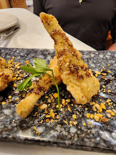 Great service, large portions and good value for the money. They had a very extensive menu of classic Spanish tapas, and meat dishes but I found the seafood to be limited. We got olives and meat with salsa on the house as we arrived, the meat was well-cooked and nicely seasoned. I had the sopa castellana, a type of tomato soup with ham, garlic and egg, the broth was a bit too oily. From the tapas that we ordered my favorites were the fried eggs with pepper and foie, and fried artichokes with black honey. The batter on artichoke wasn't too thick, and it hadn't soaked up too much oil so that was the highlight of the dinner for me. We also tried the scrambled eggs with mushrooms and the salmon with orange sauce, both if which were fine.
