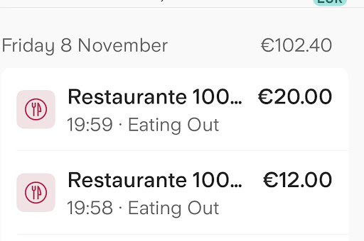 Read moreFood was okay but service was dreadful. People next to us sent their meals back as food was cold and after lots of shouting from the kitchen their food returned. They tried a little of it then paid and left. The next couple sat down and tried to order. Not sure what was said but they left without eating. I requested our bill and was asked for cash. I said I didn’t have enough and would like to pay by card. The waiter returned with his card machine and told me I needed to pay what I could in cash and put the rest on the card. On first attempt he said the machine has no signal and payment hadn’t worked so we did it again. I was given a receipt and we left only to find out later we had been charged twice. Too late for us but if you do ever use this restaurant get a receipt for everything even if told it hadn’t gone through. We have been to other restaurants in the area without any issues. Update…Bill was 42 euros I only had 32 euros in cash and was asked for that and pay the rest on card. As you can see, two payments have been taken from my bank account 1 minute apart for...