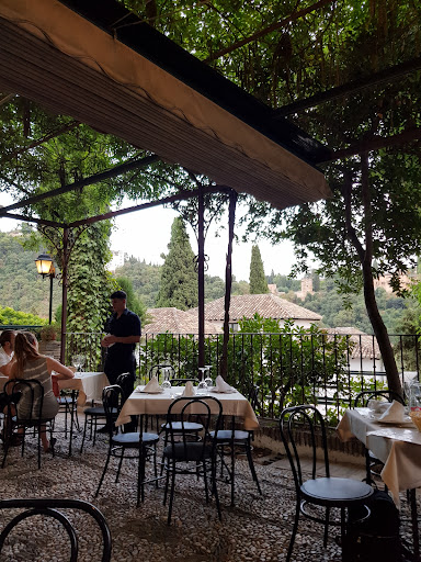 The restaurant is in a "carmen", an old walled pleasure garden, with clear views across the valley of the Darro to the Alhambra.