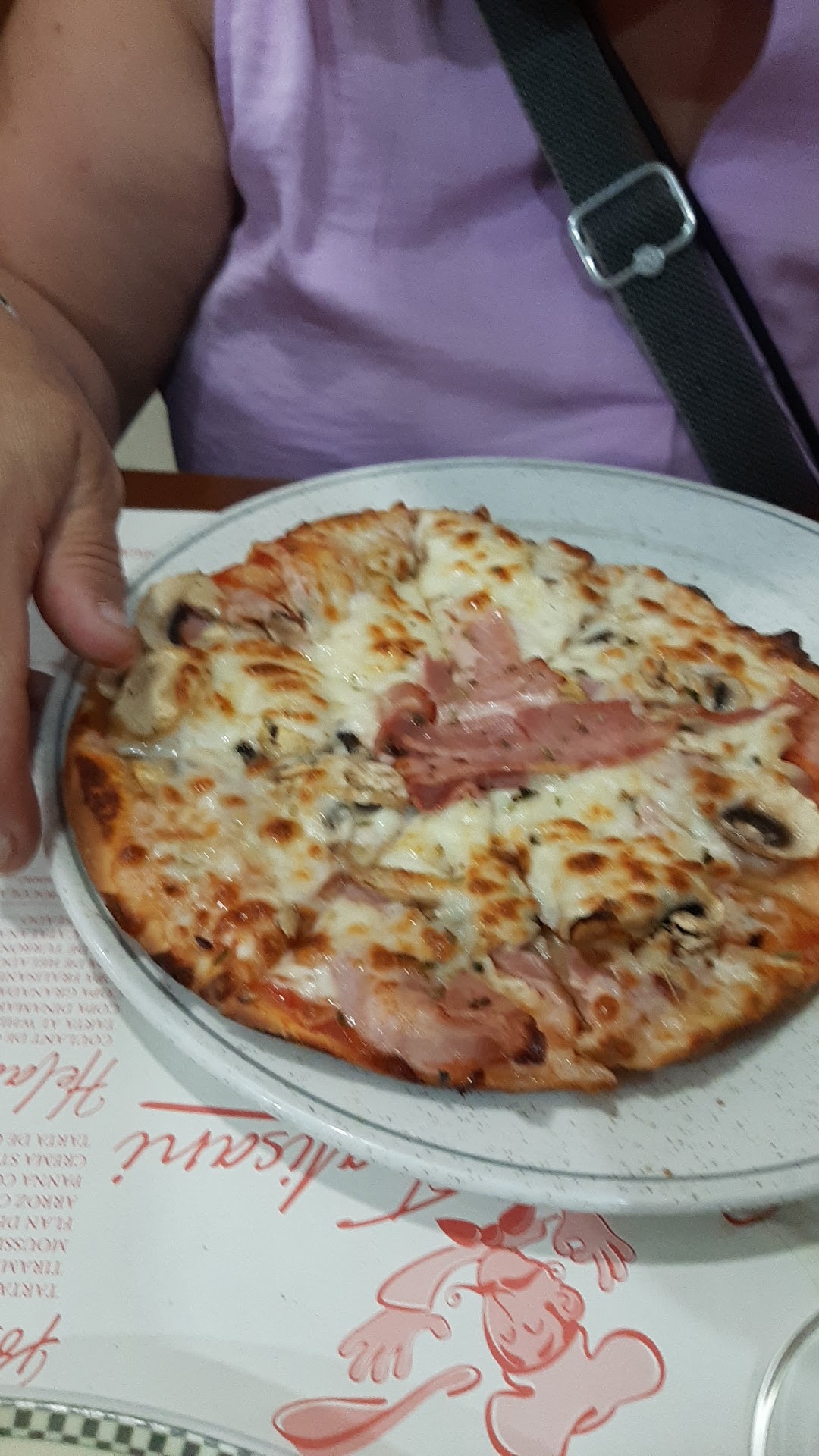 He venido a última hora del mediodía, pensé que quizá ni me atenderían, y cuál ha sido mi sorpresa al descubrir un sitio: Con un servicio excelente: los camareros súper atentos, agradables y cercanos sin rozar lo entrometido. Además, llegó todo muy rápido. Un lugar que, sin estar a la última en decoración, consigue ser acogedor. La comida tiene cosas mejores y peores: pedí menú, muy asequible. La ensalada bien surtidita de ingredientes y la pasta de salmón y gambas estaba rica. Complementé con una pizza: muy bien de cantidad y calidad de ingredientes. Tamaño pequeño (a mí no me molesta, son baratas y así podemos pedir dos, de ingredientes diferentes), lo que no me encantó fue la masa, poco crujiente para mi gusto. pedí comida para llevar, que probamos en la cena. Misma conclusión: pastas bastante ricas, pizzas bien da sabor e ingredientes, masa mejorable (desde mi punto de vista). Postres muy ricos también y carne bastante decente.