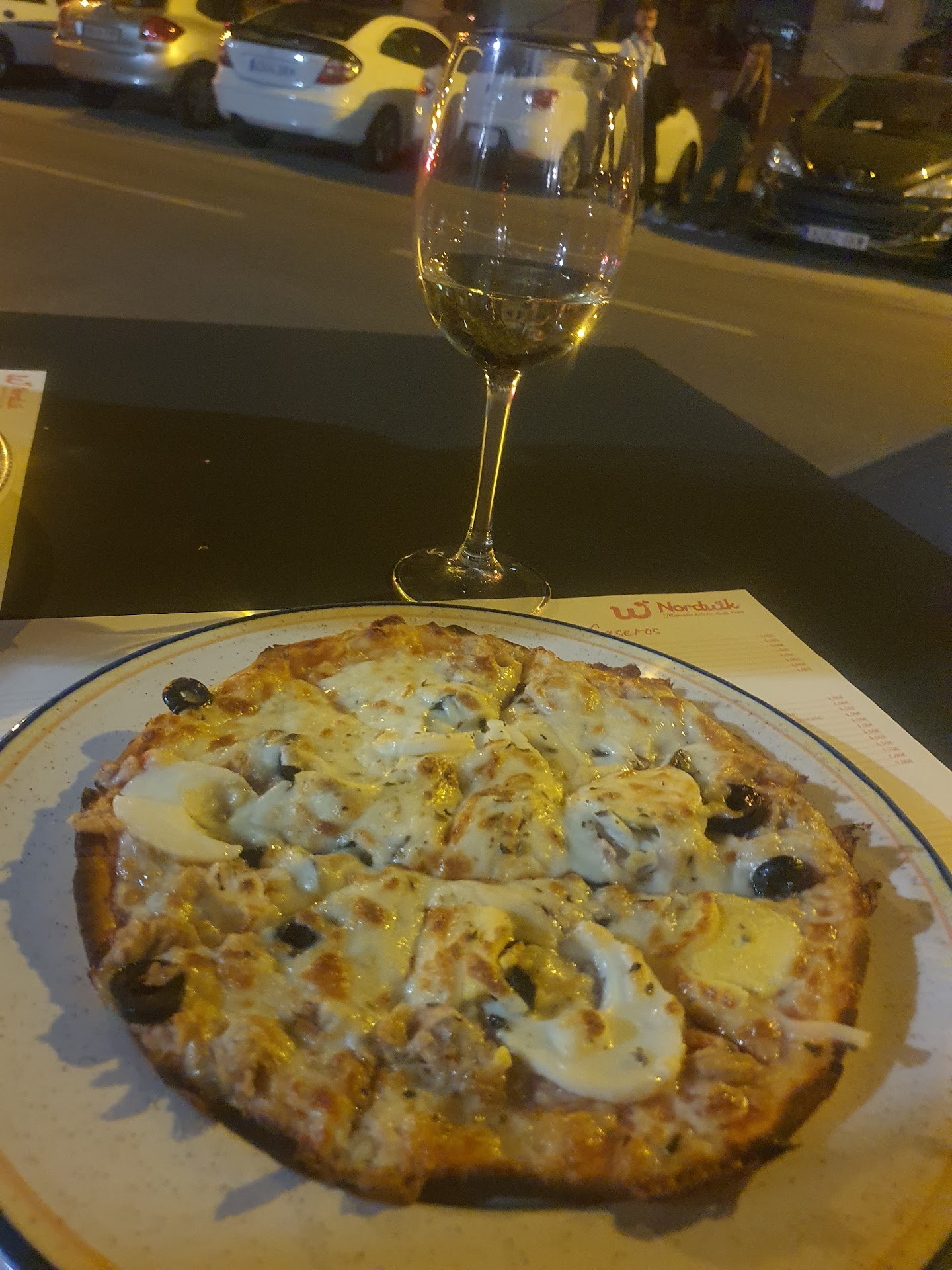 He venido a última hora del mediodía, pensé que quizá ni me atenderían, y cuál ha sido mi sorpresa al descubrir un sitio: Con un servicio excelente: los camareros súper atentos, agradables y cercanos sin rozar lo entrometido. Además, llegó todo muy rápido. Un lugar que, sin estar a la última en decoración, consigue ser acogedor. La comida tiene cosas mejores y peores: pedí menú, muy asequible. La ensalada bien surtidita de ingredientes y la pasta de salmón y gambas estaba rica. Complementé con una pizza: muy bien de cantidad y calidad de ingredientes. Tamaño pequeño (a mí no me molesta, son baratas y así podemos pedir dos, de ingredientes diferentes), lo que no me encantó fue la masa, poco crujiente para mi gusto. pedí comida para llevar, que probamos en la cena. Misma conclusión: pastas bastante ricas, pizzas bien da sabor e ingredientes, masa mejorable (desde mi punto de vista). Postres muy ricos también y carne bastante decente.