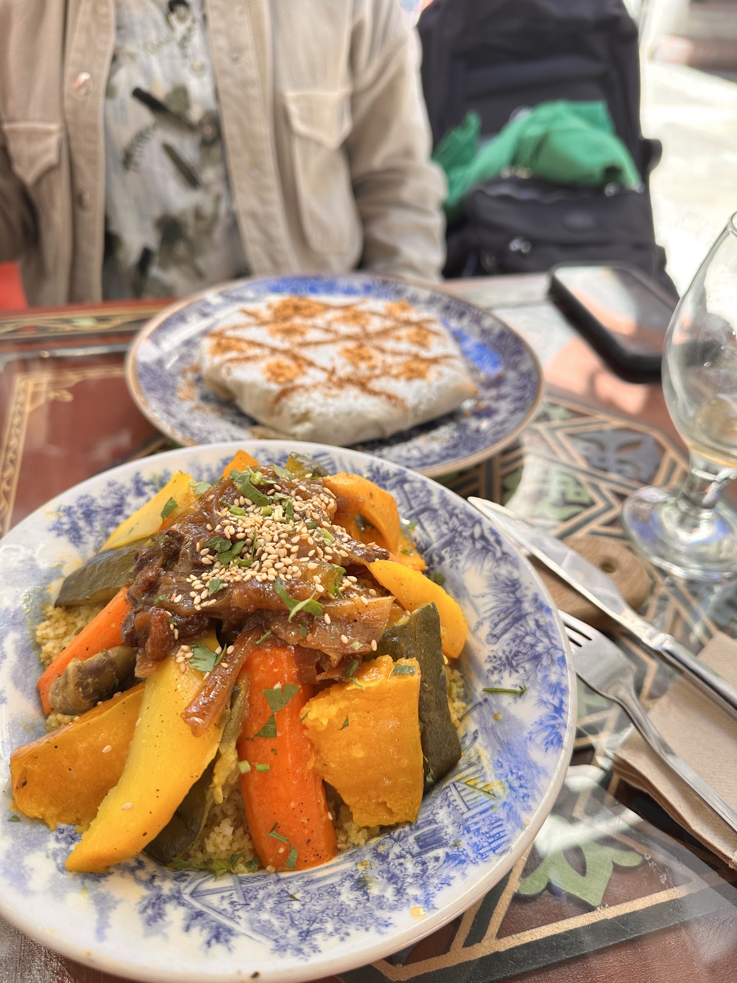 The gentleman was welcoming us with a smile 😊, he proposed a table for us where the air-conditioning was good so we could have a good air temperature. I was there with big expectationssince Ialready visitedsome teterias in spain south. But a big surprise was the amount of meat in the dishes was so little that I felt that I was scammed. I already eaten Tagin in other teteria before and it includes mainly three generous portions of meat 🍖 then the sauce and the garnish and it was cheaper than this restaurant, but what was served to us was a big bone with some meat around it, the rest is nothing.we also ordered couscous and as a surprise the dish looks as a big amount but when you dig with the spoon you realise that the dish is bottom flat , that means you half of the amount is a ceramic flat dish (kind of visual illusion). We eaten, we payed then we left the restaurant with half stomach empty since the portions were ridiculous. I really advise the owner to revise his dish content, (of course if he is attentive to clients feedback on google maps) or he will miss a big gain, and face client drop...