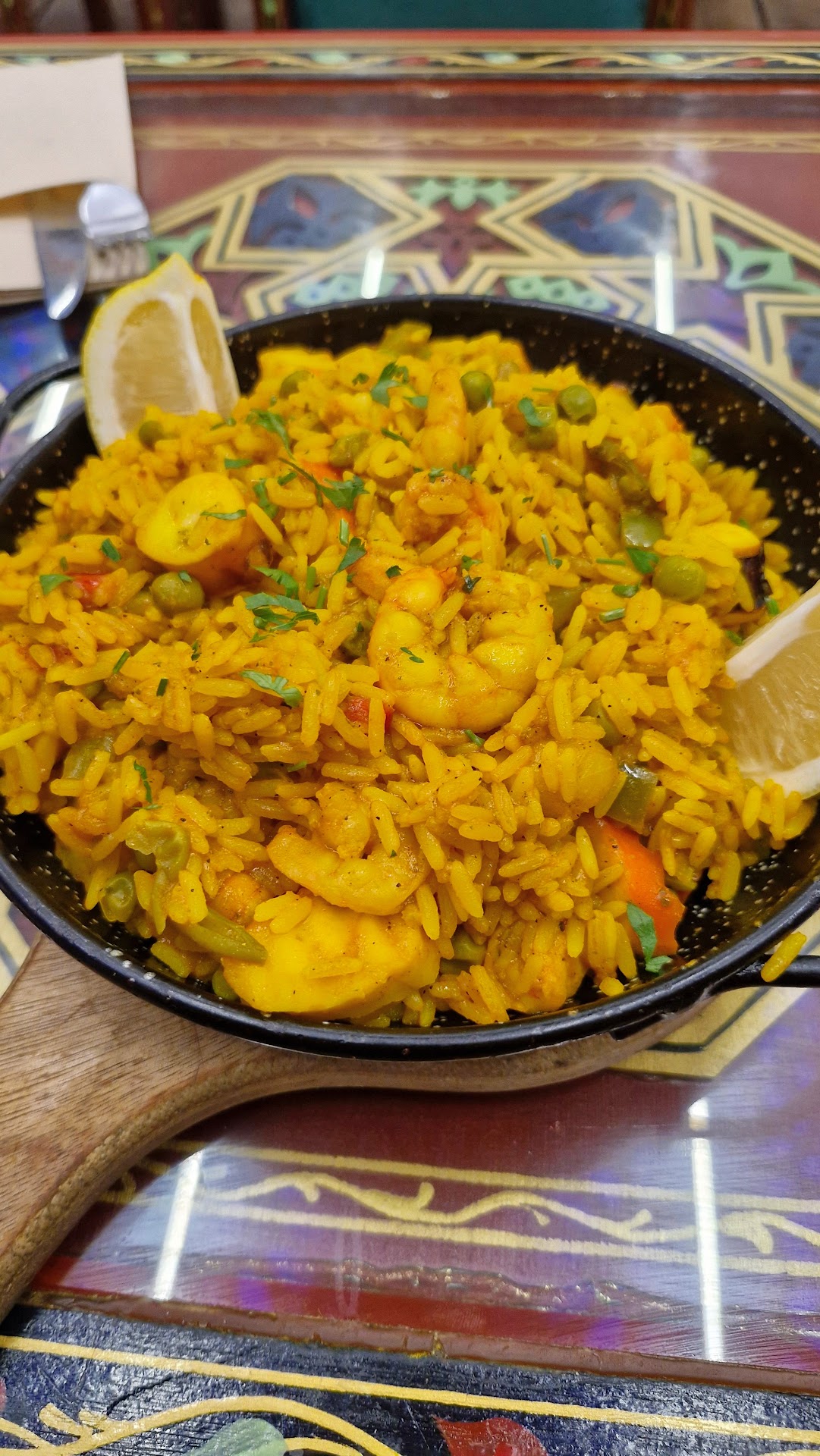 It was the worst food we had on the whole trip. The pizza (Boloñesa). It just looks and tastes like frozen pizza. This comes from someone who regularly has frozen pizza for dinner. The suspicion started when we saw the pizza was perfectly round and flat and had the standard size of frozen pizza. And it tasted like one. The Paella (Homemade - the menu said). Where do I start.... the best part of it was the lemon they put as garnish - I had to ask for extras. I needed to add a half lemon (like half the fruit) and 2 packets of salt to make it palatable. The squid rings were chewy, and the shrimp just tasted off, the mussels were OK, I suppose, compared to the other seafood on the plate (which looked like small paella pan, but clearly the paella was made somewhere else as it s no crusts on the bottom). Dare I say, it might not even be homemade after all? Overall, it was just tasteless. As a good asian, I hate not to clear my plate, especially when there's rice involved, but I just couldn't finish it. Yes, the portion was big, but I can eat for 3 people if I want to. Just ask my husband 😜. It doesn't help that the portion is big, but the taste is just not good. The Moroccan Tea. We LOVE moroccan mint tea. We took home plenty of them from Morocco and had it regularly. They do make a good moroccan tea, but for 4,80 EUR for a small pot, they are just not worth it.