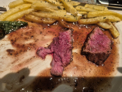 Read moreWe were really looking forward to a special meal here. A great selection of oysters on the menu (The main reason we chose to book here). We booked a table, and arrived at our booking time. We ordered from the menu (I ordered Oysters) and were later told that they had No Oysters. This was beyond dissapointing for an establishment who has such an extensive menu for Oysters. It was too late to find somewhere else to eat, so we decided to order something else (Scallops - which were good). I also ordered Solomillo (Fillet steak, although was translated incorrectly on the menu as Sirloin?), I requested my steak to be "Medium", it came "blue", I sent it back and it returned as "rare". I did not want to send it back a second time, as my wife had already eaten her main course. I asked if I could speak to a manager, but, was told he wasn't there and was at "the other restaurant". I have to say that the front of house staff were very good, but, a chef who cannot cook a steak is not a chef, and an establishment of this standard with no manager available is very dissapointing. Not a cheap meal, but, very sub standard food. It really was such a shame as this should have been an amazing meal, in a lovely atmosphere, but, we were terribly dissapointed mainly due to very poor availability of food and the chefs inability to cook a medium steak after 2 attempts. (The picture, shows the steak after it had already been sent back, a novice can see this is far...
