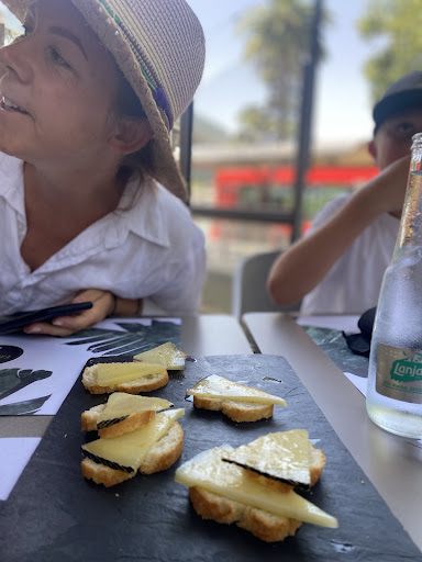Para no repetir. Se jacta de ser un rincón de tapas, pero los camareros no te ofrecen tapas, te ofrecen la carta y al no conocer el sitio pues elegimos platos de la carta. No aparecen ni bocadillos ni platos combinados. El plato mas barato 8,50€ y es ridiculo. Un gran de plato de ceramica muy bonito con un pequeño hueco para el risotto, cantidad ridiculo para el precio que tiene, llena mas una tapa de arroz. La hamburguesa que pedí para mi, la especial, 2€ más cara que la normal que son 8€, sin que en la carta se indique cual es la diferencia. Pagar 10€ por una hamburguesa con carne de no se que, con queso de rulo de cabra y sin ensalada, con patatas fritas sin aceite y sin mostaza porque no había. ketchup si que habia, pero del barato sin marca y frío de la nevera. Y por último sillas muy bajas que hacen que tengas que subir los brazos para usar los cubiertos. Con unos cojines se podrían solucionar, mi estatura es la media 1,76 cm por lo que no es exagerado lo que digo. En resumen, comida rica, pero escasa, mal...