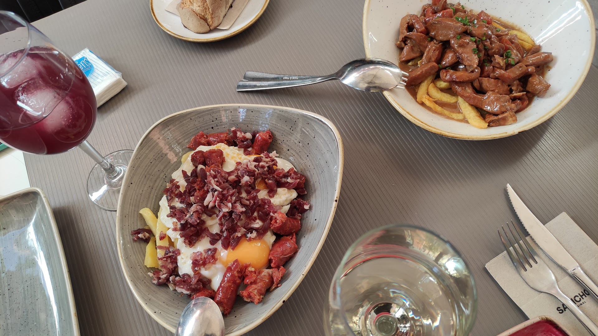 Local de aspecto actual, cuidado y muy buen ambiente, con camareros perfectamente uniformados. Carta interesante, con productos exclusivos que difícilmente encuentras por la zona. En nuestra visita a Granada, huyendo de bares y restaurantes orientados al turista, nos encontramos casi por casualidad con este restaurante, el cual nos llamó la atención por salirse de lo habitual que puedas encontrar en el centro de la ciudad. Una vez dentro con la bebida nos dispusieron un guiso de carne y patatas a modo de tapa, que estaba bastante rico, lo cual nos incitó a pedir de la carta dos platos diferentes: 1.- Jamón del mar (angel leon y petacachico). 2.- Chistorras de atun.
