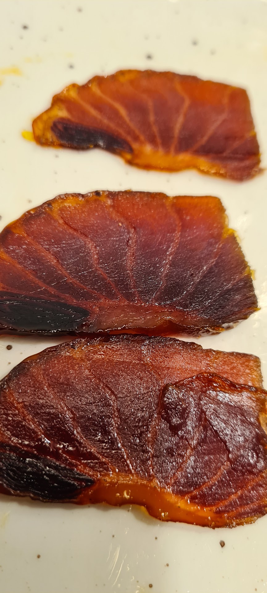 Por desgracia, hasta aqui fue lo positivo, ya que por un error entendemos de comanda en sala, las chistorras no fueron de atun y aun cuando referimos que no parecia el plato que habiamos pedido, nos reconfirmaron que sí, que eran de atun. Nada que decir al sabor del plato, porque estaba bueno, pero simplemente no era lo que habiamos pedido. Nos sirvieron chistorras tradicionales, como asi quedó reflejado en la cuenta que pagamos. Pero lo peor no fue esto, podria haber quedado en un simple malentendido y poco mas, pero lo peor llegó con el jamon de mar. Yo me sentí decepcionado por lo que alli nos sirvieron, primero decir que tardaron muchisimo en servirlo y es que estoy convencido que no era jamon de mar de Ángel León, sino mas bien una mojama de corte grueso y sabor amargo, poco o nada agradable al paladar. Debimos devolver el plato, o simplemente no haberlo pedido. Tampoco nadie se interesó por saber porqué no nos comimos el plato al pedir la cuenta. Una pena, y seguro que el resto de platos basándonos en el guiso del principio estaran ricos, pero la verdad es que nuestra experiencia no...