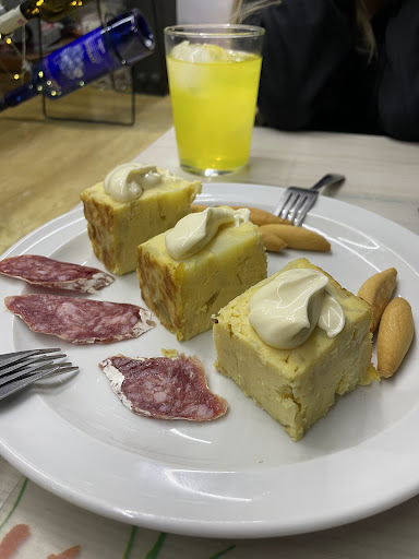 Read moreFuimos de casualidad a tomar algo rápido. Nada más entrar nos recibieron con mucha alegría. Nos gustó mucho. Probamos su exquisita tapa de tortilla. Sin duda fue lo mejor. (Tienen opción a pedir tapas extras y raciones, tanto de tortilla como de otras tapas como hamburguesa, montaditos, ensaladilla rusa…) Pedimos unos huevos rotos con jamón y un lagarto al medio, para compartir. Las cantidades son bastante generosas. Teníamos entre los comensales a una vegetariana e hicieron todo lo posible para agradarla. Nos invitaron a probar un licor que ellos mismos hacían. Estaba muy rico El servicio fue rápido y amable. Sobretodo destacar la simpatía y amabilidad de su dueña. Quizás las bebidas un poco...