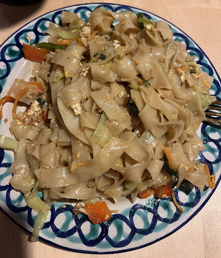 The pad Thai had all kinds of veggies that a Pad Thai doesn’t include or at least how they describe it on their website. It had green pepper, red pepper, zucchini, broccoli and carrot. And no spring onions, cilantro or peanuts.