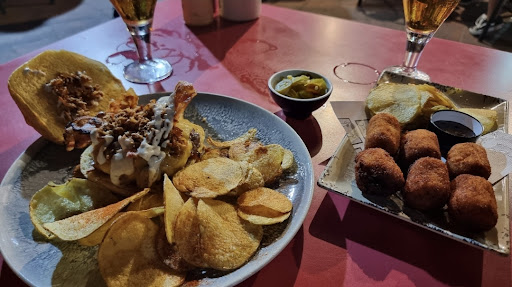 Read moreI was really a little disappointed. We had to wait about 15 mins to order drinks. Several coupes arrived after us, but ordered before us. I ordered the chicken croquettes (6 pieces), which were deep fried and very oily and although the home fried crisps looked interesting, they were somewhat soggy and cold. For 7.50€ I would gave expected better.