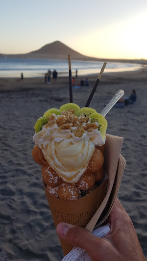 I took upon myself the daunting task of testing and ranking all ice cream shops in El Médano, because, why not? The ranking is based on the golden standard of ice cream: the pistachio flavour (obviously) . Mordisquitos comes to a strong first with its naturally flavoured, creamy and not overly sweet pistachio ice cream. The unsweetened (and vegan) piña y coco flavour was also excellent. The ice cream in this shop is so good that they don't need to be open every day (they're shut Tues/Weds).