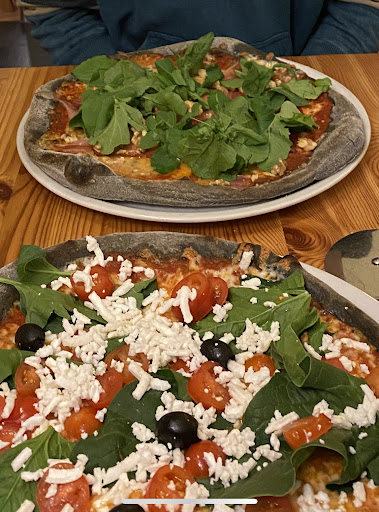 Truffle pizzas and pesto the wife said were great. I ordered a custom pizza with bacon, mushrooms, sausage, smoked cheese, egg, spinach, olives, garlic oil and hot spicy oil and I couldn't be happier. Toppings were flavourful and fresh, crust baked to perfection. I wish i had gotten the name of the guy taking our orders, he has been super friendly and helpful in recommendations.