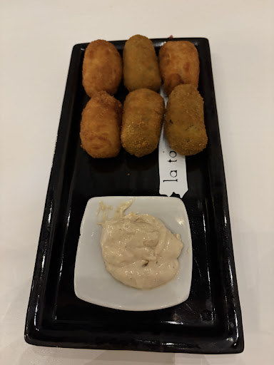 The food is truly awful. We started with baked fresh cheese, which was hard and tasteless and served with a sweet jam. The croquettes came next, dry with almost no flavour, and served with a sweet fruit mayonnaise that was like strawberry yogurt, disgusting.