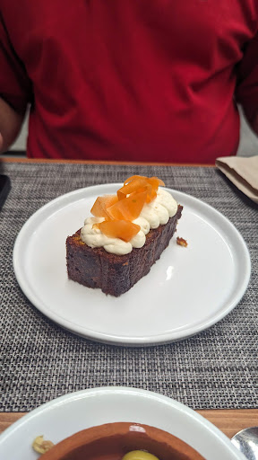 En cuanto a la comida, presentación algo curiosa pero platos con muy poca cantidad, y no del todo acertados (pedí calabaza con Mozzarela, la calabaza estaba caliente y la mozzarela muy muy fría...). También decir que los platos no están bien ajustados entre ellos, nos pedimos un mismo plato y la guarnición de uno doblaba la del otro!