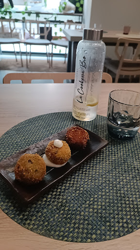 Read moreCarísimo en relación calidad, cantidad, precio. No tienen menú a menos que lo pidas para llevar. La carta la a sigue teniendo sin imprimir en código QR, Te dicta de memoria lo que tiene fuera de carta sin decirnos los precios. (Lo fuera de carta debería constar en papel, por escrito y con los precios con el IVA incluido) Nos sugirió tomar agua a parte de las bebidas que pedimos y resultó que era pagando y eso que era agua del grifo osmótica con una rodaja de limón y un cacho de jenjibre. (Si la ofreces no la cobres o di que es de pago) al pagar con tarjeta no nos dió un ticket desglosado. Más de 50€ por una sopa, un arroz, unas croquetas, una cerveza, una copa de vino y un agua del grifo. Flaco favor a la alimentación vegana. No...