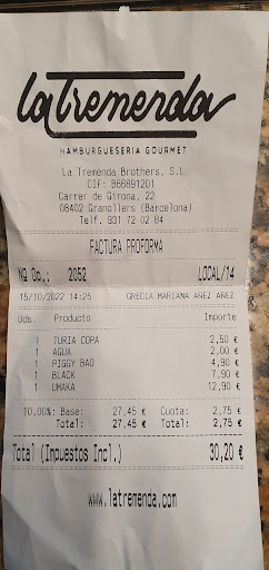 Hoy 05/05/24 hemos vuelto a comer en La Tremenda. Nos sigue encantando, no solo por su deliciosa comida, helado de fu..cream incluido, sino por la atencion por parte de todo es staff. Desde el team leader, el que hoy pilla cacho, la staff q nos aconpaño a la mesa y el staff mas junior. Da gusto oirlos trabajar y q cuando comenten un error oirlos rectificar. Nuestra hamburgueseria favorita