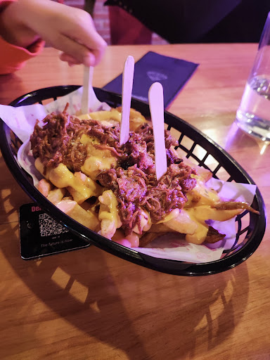 Per la carn de vedella de les burgers la veritat que la vam trobar de pésima qualitat sobretot pel preu que les fan pagar que es a 15'90€ la doble smash amb una crosta (reacció de Maillard) inexistent, i això que es la gràcia d'aquestes burgers, el pa si que estava bo, pero les patates de guarnició estovades semblava que estiguesin fregides desde 1ra hora del mati, les patates marranes que son les de la foto si que estaben millor pero te les tens de menjar amb un punxo de fusta.