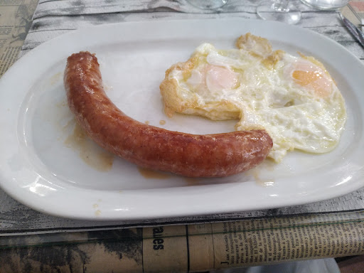 En cuanto a los segundos, pedimos bistec y lomo de buey. El tamaño de estos era diminuto, su grosor sería de escasos milímetros y nos los sirvieron envueltos en aceite. Eso sí, las patatas que lo acompañaban, estaban ricas, lo único positivo de todo el menú, así como el flan casero y los postres que no estaban mal del todo.