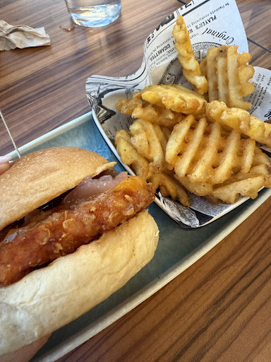 Read moreWe used to come here often, and I always enjoyed ordering the crispy chicken burger. After taking a break from visiting, we decided to come back — but unfortunately, it was a huge disappointment. The chicken meat was completely different and not crispy at all. The caramelized onions, which used to be brown and sweet, were replaced with red pickled onions (or something that looked and tasted off — I’m not even sure what they did to them). There were no pickled cucumbers, which originally came with the burger, and instead it was just simple BBQ sauce and some cheese on a soft, plain white bun.